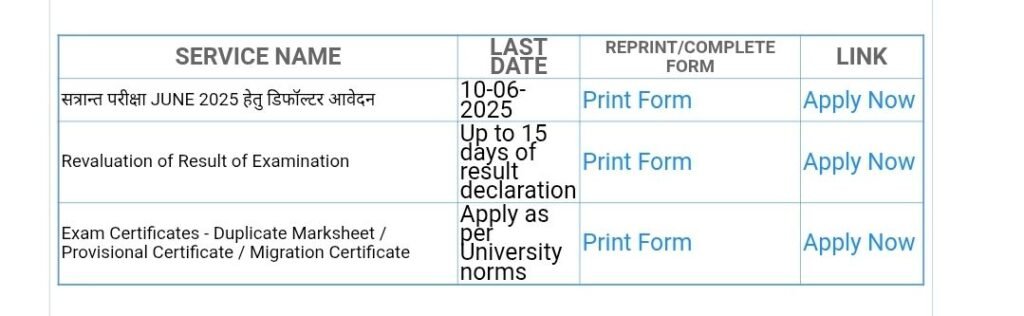 - यहाँ दिए गए ‘सत्रांत (सैंदातिक/प्रोजेक्ट/लघुशोध) परीक्षा June 2025 हेतु डिफॉल्टर आवेदन‘ ऑप्शन के सामने Apply Now पर क्लिक करें।
